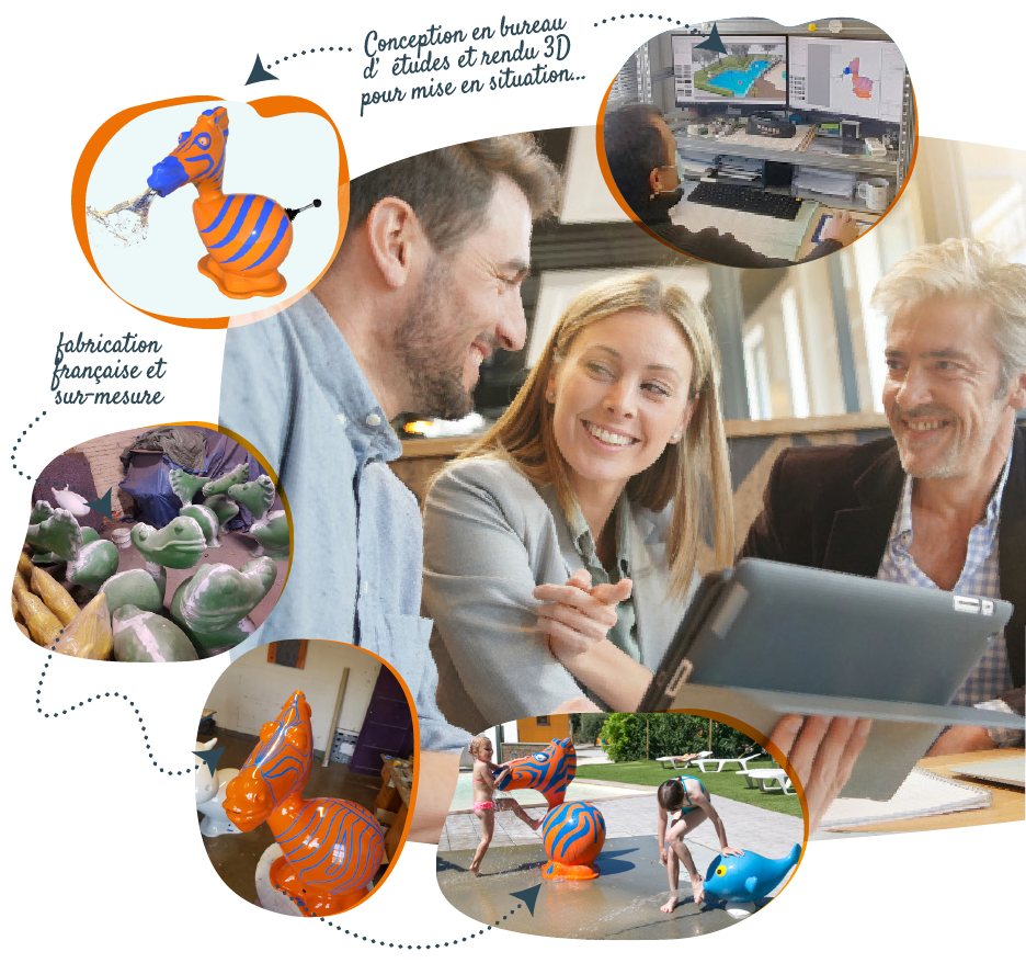 Les jeux d’eau sont conçus et fabriqués en France à partir de matériaux durables permettant une qualité des produits irréprochable, mais permettant aussi de s’adapter à votre thème. Nous nous attachons à travailler chaque jeux avec le soin du détail, mêlant réalisme, imaginaire et qualité !